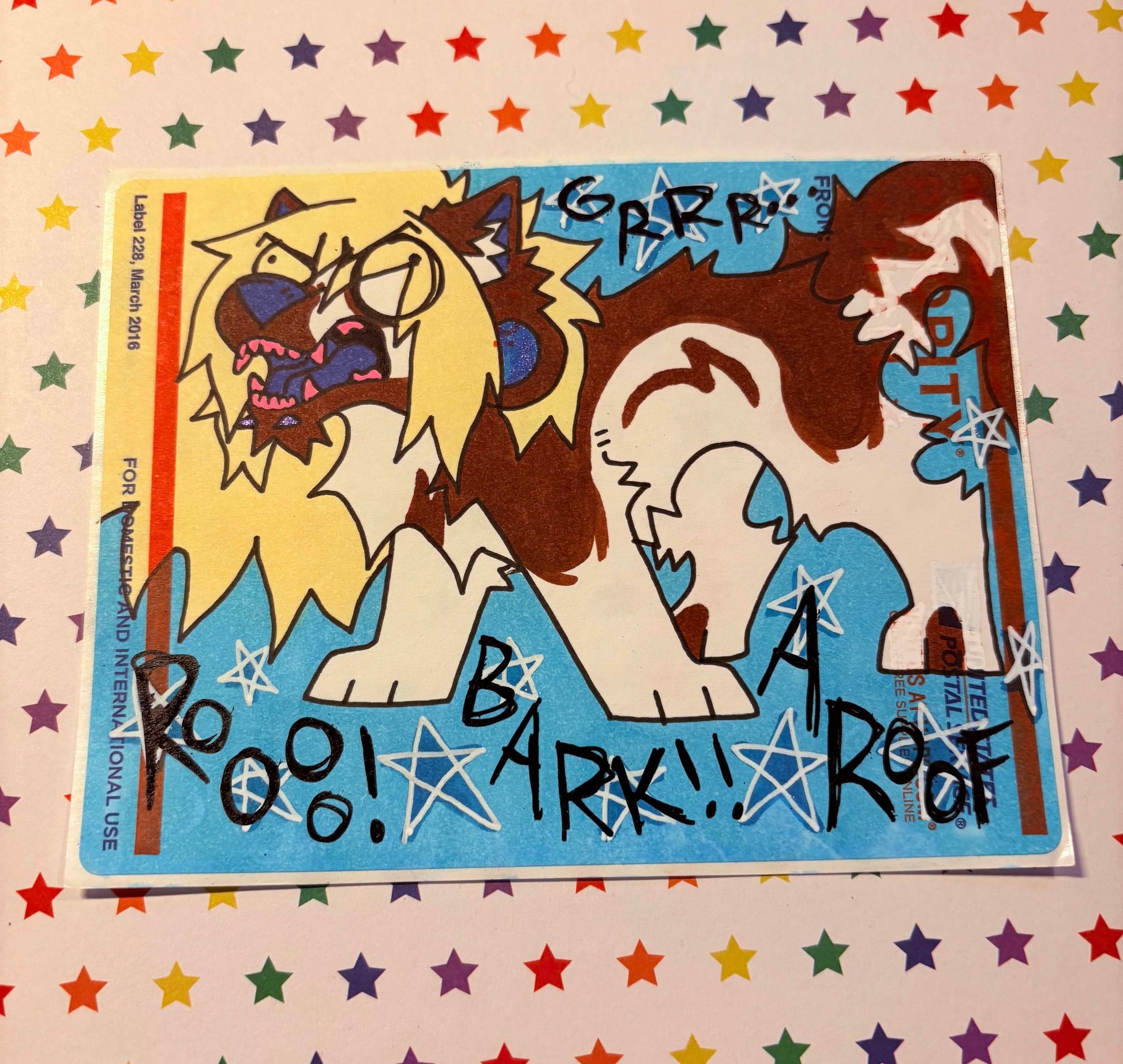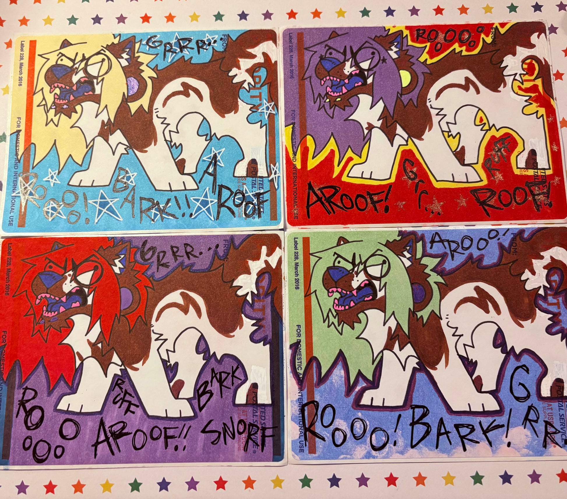 each sticker is hand lined and colored with many different types and colors of markers and pens; meaning that although they're all the same design, every single sticker is completely different from the other and is completely original!