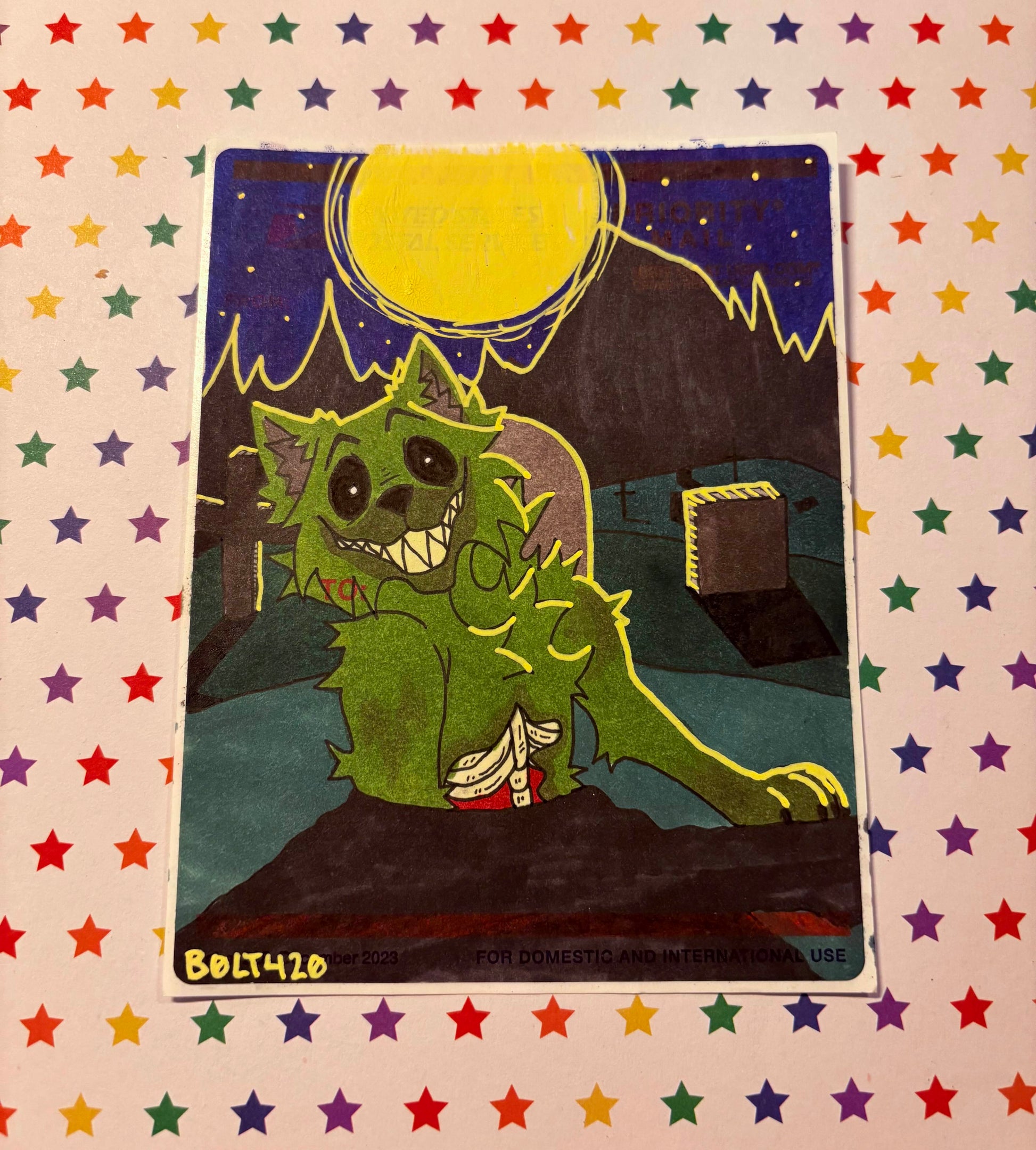 this piece is done on a USPS Priority Mail shipping label!